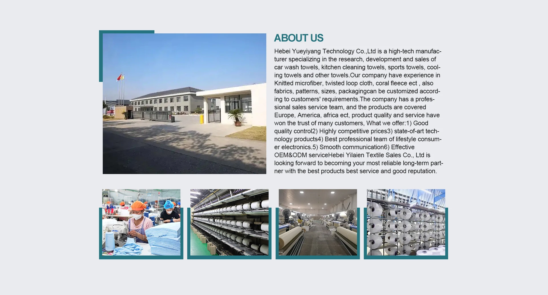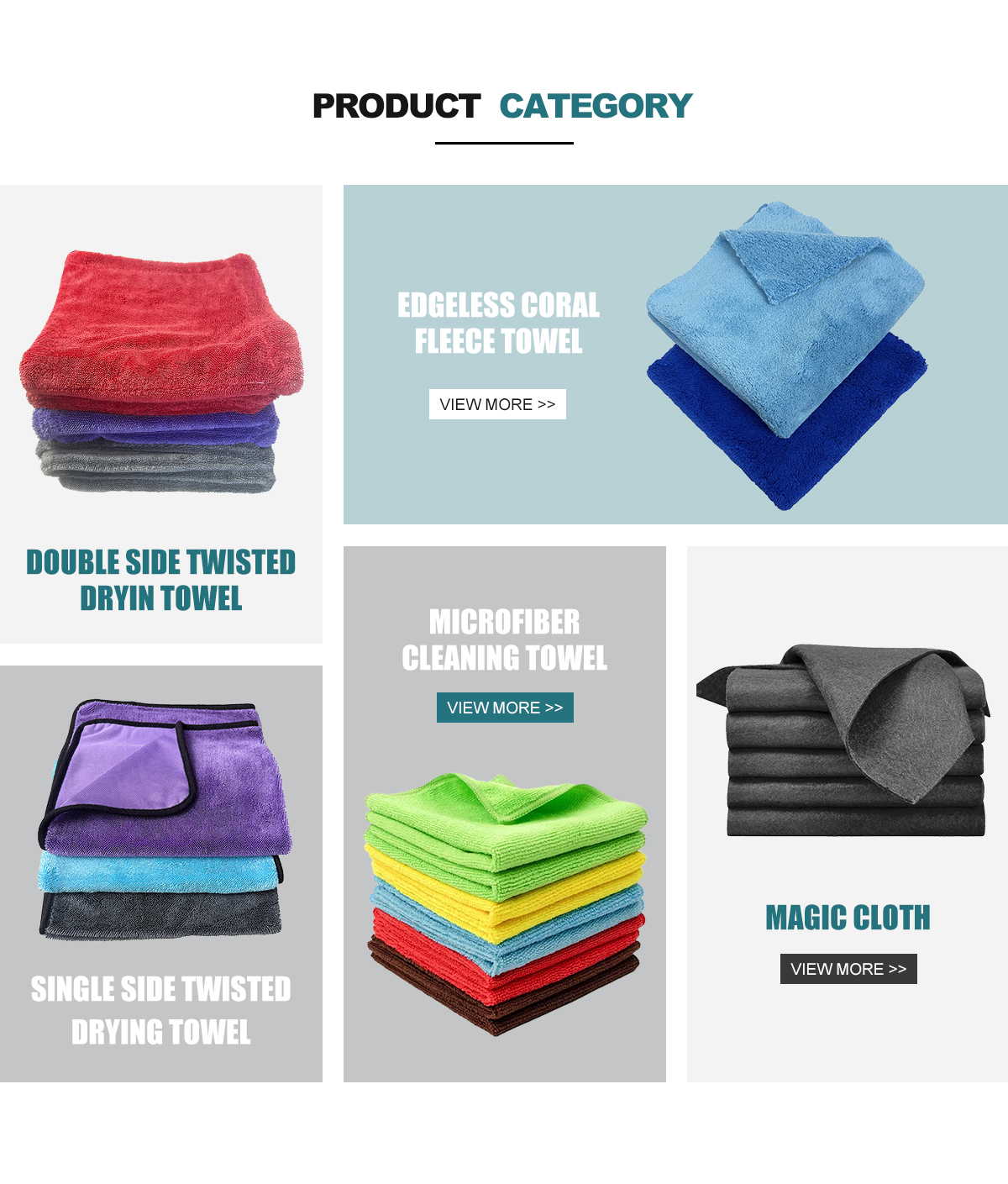 Productos principales:Toalla de microfibra, toalla de limpieza, toalla de secado de coche, toalla de cocina y de mano, paño de microfibra